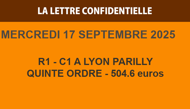 1 | BARAZIN | H | 3 | LECOEUVRE C. | DEVIN (S) HF. | 57 | 9400 | 3p 5p 4p 1p 7p 11p 5p 1p 1p 5p (24) 1p 3p | |