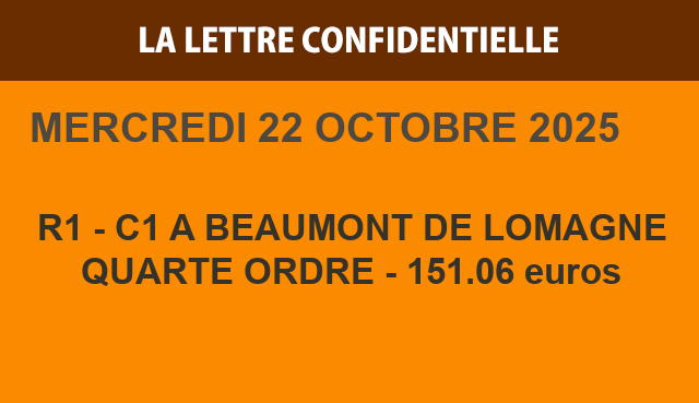 | 1 | JANATOSSA | F | 4 | RAFFESTIN J. | GHEKIERE F. | 2550 | 8720 | Da 8a 0a (23) 7a 6a 4a 5a 6a 4a 7a 3a Da | |